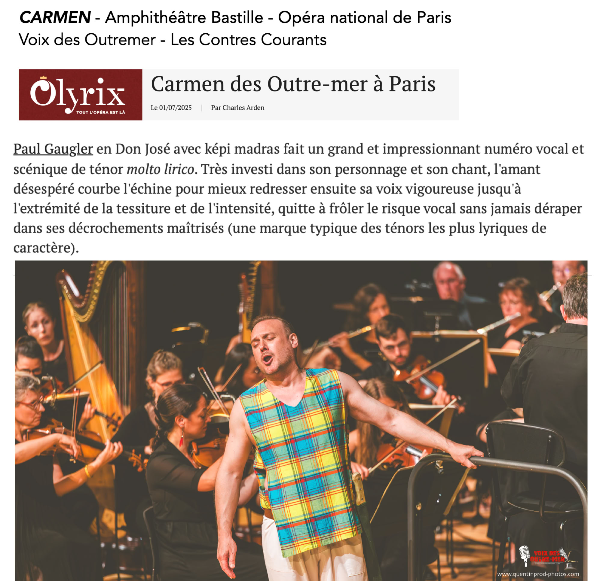 « Paul Gaugler en Don José avec képi madras fait un grand et impressionnant numéro vocal et scénique de ténor molto lirico. » (Amphithéâtre Opéra de Paris)