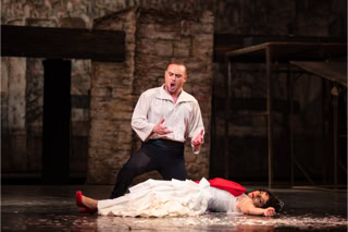 Paul Gaugler as Don José with a madras cap delivers a grand and impressive vocal and stage performance as a molto lyrico tenor. (Amphithéâtre Opéra de Paris)